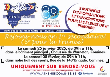 Les petits déjeuners de l’Athénée 6 janvier 2026 La Direction Suivre ce lien : https://www.atheneecomines.be/inscription-au-petit-dejeuner/